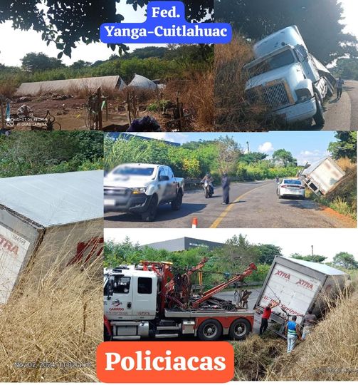 *Tras maniobras de las grúas cierre total, con presencia de personal de la Guardia Nacional, PC y policía de Yanga, bomberos Regionales de Cuitláhuac, hubo reducción de carriles.