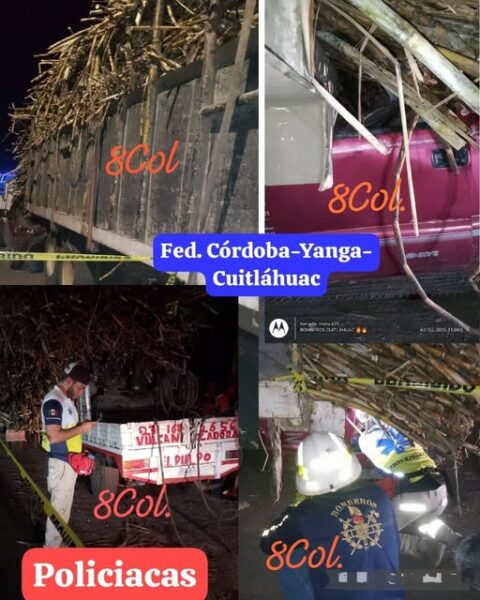 CUITLÁHUAC, VER. (8Col.)02/04/2025.-Reportan trágico accidente choca camioneta de talachero por alcance contra carro cargado de caña en la federal Córdoba-Yanga- Cuitláhuac km. 22+600, con saldo de una persona sin vida.