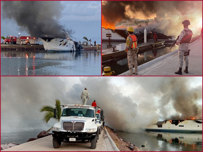 Miles de litros de combustible vertidos al mar, una inmensa columna de humo y al menos cuatro yates y una embarcación mayor calcinados, dejó como saldo un incendio en las instalaciones de Marina Palmira en La Paz, Baja California Sur.