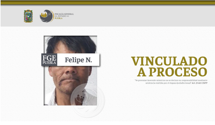 La Fiscalía de Puebla informa en un comunicado que ante una denuncia ciudadana por extorsión, detuvo a Felipe N., quien presuntamente se presentó a cobrar el dinero exigido a la víctima para no dañar a su familia. Está vinculado a proceso con prisión preventiva: