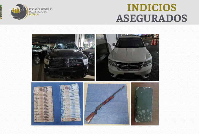 Durante la intervención los elementos aseguraron además un teléfono celular, el dinero producto de la extorsión, una camioneta Dodge Ram de Tlaxcala, una camioneta Dodge de la Ciudad de México y una escopeta.