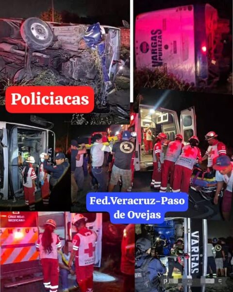 VERACRUZ, VER.(8Col.) 23/12/24.- Una aparatosa volcadura de un autobús de pasajeros, marcado con el número económico 1232 el cual se registró la noche de este lunes y causó la movilización de las corporaciones de auxilio, entre estas varias unidades de la Cruz Roja, además de la policía estatal y G.N.