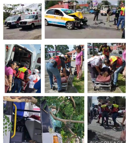 Un taxi de la ciudad de Córdoba de color blanco con amarillo y un autobus de la empresa Metro, con un saldo de cuando menos 5 personas las lesionadas.