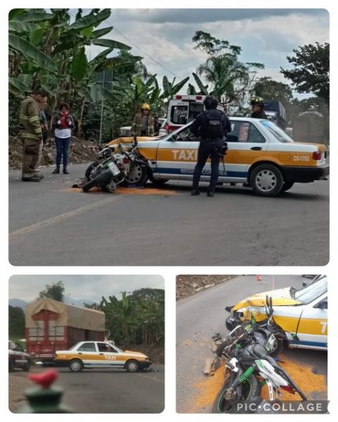 Aunque se desconoce como se dieron los hechos, la motocicleta terminó por impactarse contra la salpicadera de un automóvil, tipo Tsuru de servicio de taxi marcado con el número económico CO1762, de Córdoba de color blanco con amarillo.