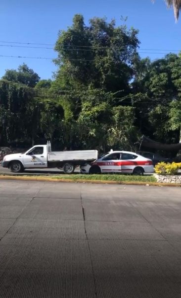 Al parecer el conductor del taxi perdió el control del volante y se impacto por alcance contra la camioneta, lo cual dio como resultados daños materiales, los tripulantes ilesos según se dijo en redes sociales.