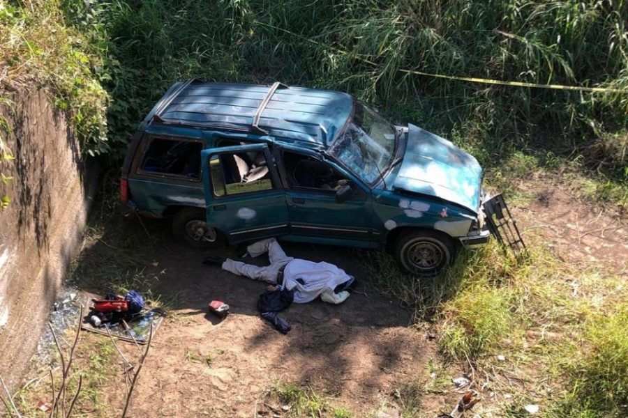 Ello generó que el chofer del otro vehículo, tuviera que esquivarlo, cayó al barranco y volcó, saliendo desprendido el copiloto quien perdió la vida casi de forma instantánea.