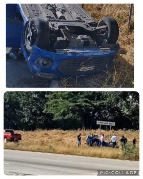La unidad en la que circulaban es un automóvil tipo Ford IKON, 5 puertas de color azul con placas de circulación XCH259A, del cual se indican dos personas resultaron lesionadas luego que la unidad terminará fuera de la carretera con las llantas arriba.