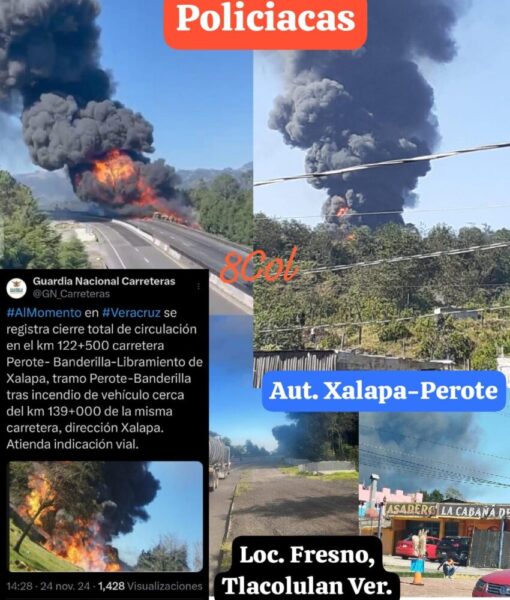 Tanto elementos de la Guardia Nacional, como de personal de la secretaría de Seguridad Pública ,COPEXA, personal del Cuerpo de Bomberos y la DGAAE, se movilizaron para brindar atención a un incendio de una pipa luego de que esta volcadura en la autopista #Perote–#Xalapa.