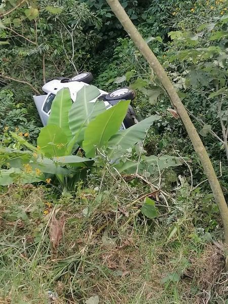 IXTACZOQUITLÁN, VER .- La tarde de este lunes se alertó a los cuerpos de auxilio luego de haberse registrado una salida con volcadura de un automóvil de una empresa refresquera.