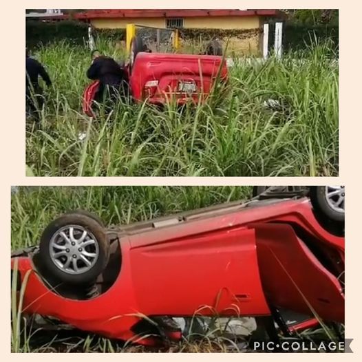 CHOCAMÁN, VER .- La mañana de este jueves se registró una aparatosa salida con volcadura de un automóvil de servicio particular el cuál era tripulado por dos personas.