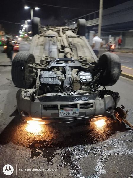 .Al lugar se trasladaron cuerpos de auxilio y la policía municipal, y casi a la altura de la conocida fábrica textil fue ubicada una camioneta tipo X-trail de color gris, con placas de circulación YKP-54-52 , del estado, la cual se encontraba con las luces encendidas y volcada llantas arriba