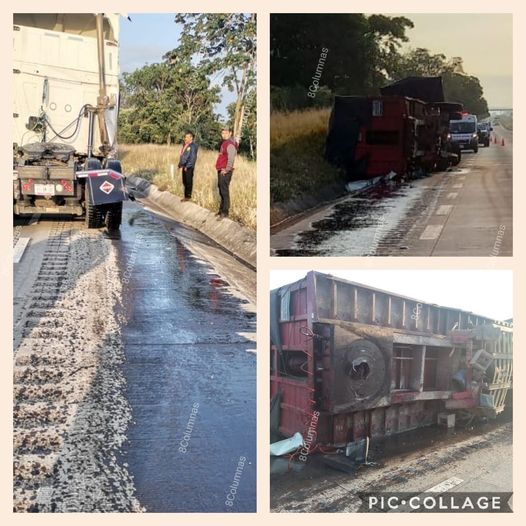 CUITLÁHUAC, VER.- Aparatoso accidente se registró la mañana de este martes, luego de que un remolque se desprendiera del tractocamión, y terminara volcado sobre uno de sus costados.