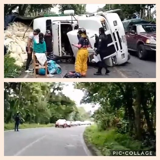 La unidad pesada circulaba cargada de maíz con más de 20 toneladas del grano el cual volcó a su costado derecho, en donde no se reportan personas lesionadas, solo daños materiales.