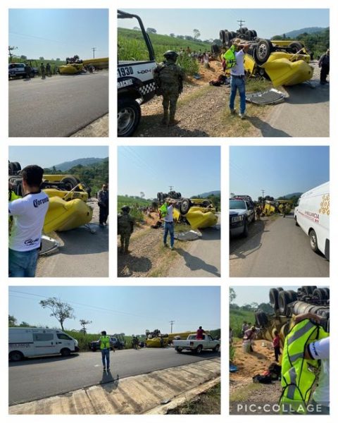 La carga terminó esparcida sobre la carretera y los cañales, del lugar, aunque la circulación fue afectada o reducida a un solo carril, debido a las acciones de auxilio de personal de PC, Samuv y de la Marina, junto con policías estatales que resguardaban la zona.
