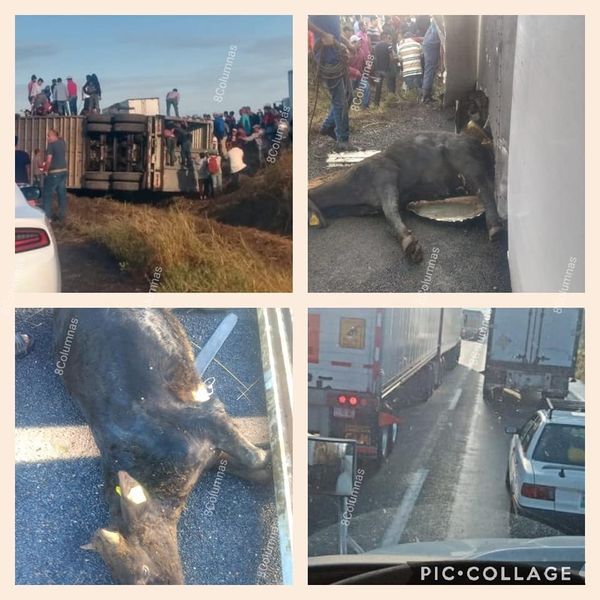 Se registra volcadura de tráiler cargado de ganado en la autopista, Tinajas-Cosoleacaque; saldo un lesionado
