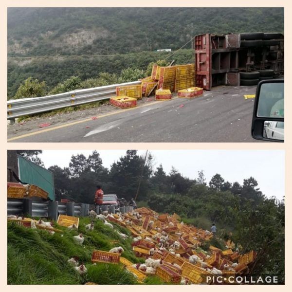 La valiosa carga de pollos vivos terminó esparcida fuera de la carretera, tras terminar volcada sobre uno de sus costados, ya que se comenta tras la velocidad el conductor pudo haber perdido el control y terminó volcada la pesada unidad.