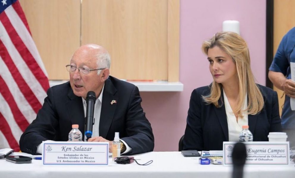 Ciudad Juárez.- Durante este miércoles se realizó en Ciudad Juárez, una mesa de diálogo sobre tendencias migratorias, en donde estuvieron presentes la gobernadora de Chihuahua, Maru Campos, el subsecretario de Administración y Recursos del Departamento de Estado, Richard Verma; el embajador Ken Salazar y el cónsul de Estados Unidos en Juárez, Eric Cohan.