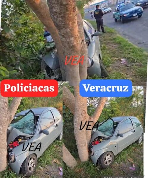Veracruz. (8Col.) 27/02/2025. – Tres jóvenes que circulaban a bordo de un automóvil particular de modelo atrasado tipo Ford K, resultaron lesionados luego de que el conductor perdiera el control del volante se salieran de la carretera y terminarán impactados contra un árbol.