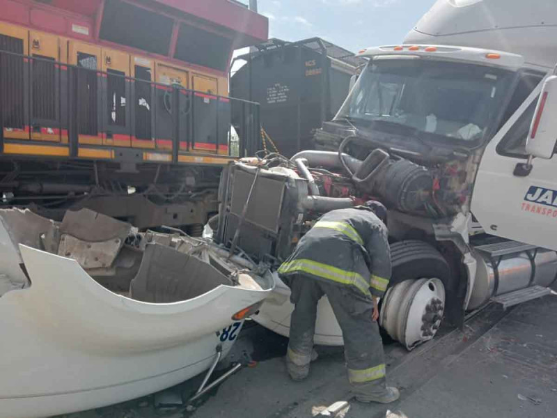 Un tráiler intentó ganarle el paso al tren, sin que lo haya logrado, impactando el ferrocarril a la pesada unidad en Ramos Arizpe, Coahuila.