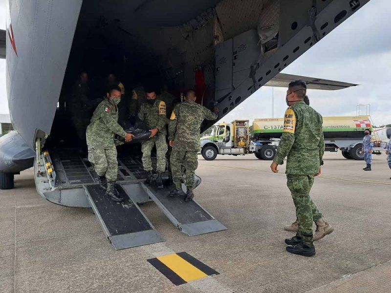 El objetivo es trasladar 108 toneladas en una primera etapa, de víveres consistentes en productos de la canasta básica, como parte de los trabajos del Plan DN-III-E que el Ejército y Fuerza Aérea Mexicanos.