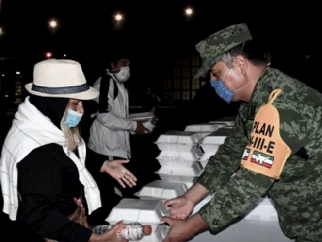 A partir del 4 de mayo de 2020, los integrantes del Ejército y Fuerza Aérea Mexicanos iniciaron la aplicación del Plan DN-III-E COVID-19, adaptándolo a esta situación inédita que vive el país y el mundo entero”, se explica en uno de los gráficos del video.