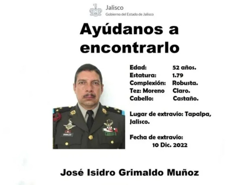 La desaparición del coronel de Caballería Grimaldo Muñoz ocurrió el pasado 10 de diciembre, en el municipio jalisciense de Tapalpa, cuando el comandante del 16 Regimiento de Caballería Motorizado en Nuevo Laredo, Tamaulipas, se encontraba de vacaciones.