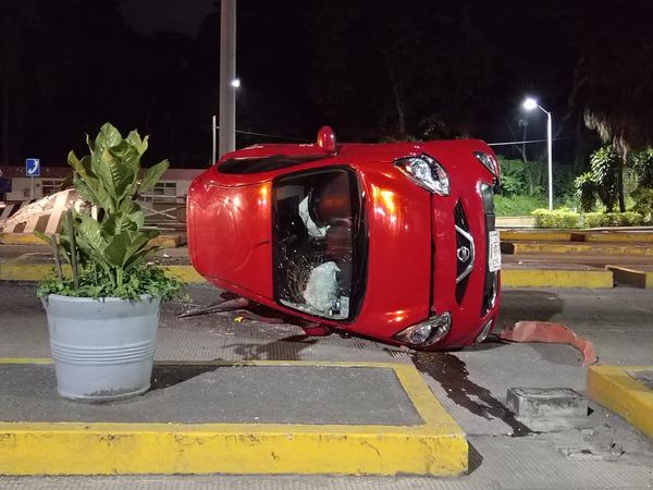 Se registra una volcadura en la ex caseta de cobro de Fortín, de la autopista Orizaba-Córdoba, un automóvil de la Nissan tipo March; reportan personas con lesiones leves.