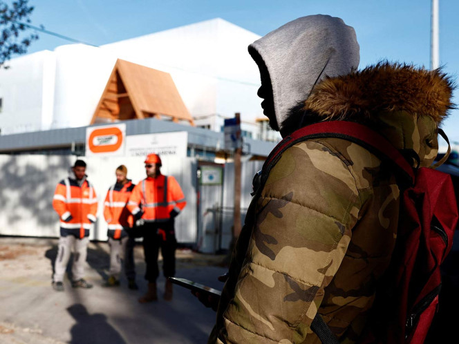 Decenas de trabajadores bloquearon las obras de construcción de un polideportivo olímpico en el norte de París para exigir contratos y permisos de residencia en Francia.