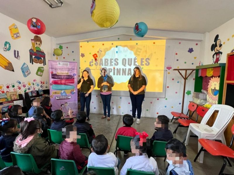 La plática se llevó los a la comunidad estudiantil del “Jardín de niños Tonatiuh” que dirige la maestra Raquel Saro García, donde Celia Camelia Hernández Lima, secretaria ejecutiva municipal de Sipinna, a través de audiovisuales explicó paso a paso cada uno de los derechos que tienen y sus deberes.