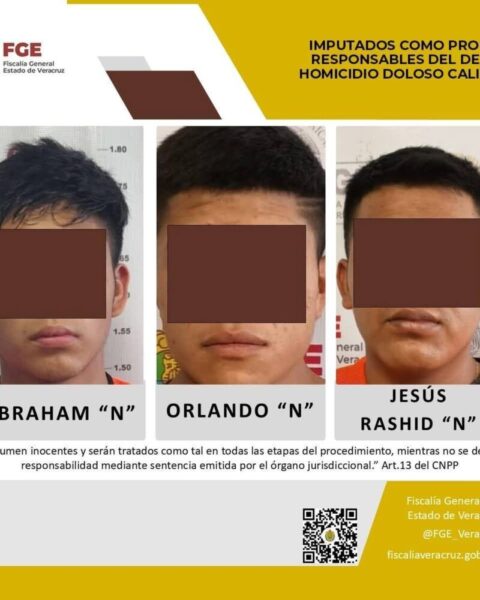 #Ixtaczoquitlán Ocho Ocho Columnasoamigos y seguidores de 8 columnasgales, Ver., 22 de julio 2025.- La Fiscalía Regional Córdoba realizó imputación en contra de Abraham “N”, Orlando “N” y Jesús Rashid “N” como probables responsables del delito de homicidio doloso calificado cometido en agravio de la víctima F.S.D.