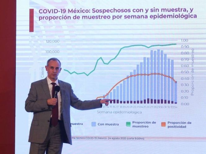 No obstante, reiteró -como lo dijo la semana pasada- que no existe ninguna instrucción del Gobierno Federal para reducir el número de pruebas como una estrategia para lograr un descenso de casos, porque por el contrario, la aplicación de pruebas ha aumentado y la positividad se ha reducido a un 43 por ciento.
