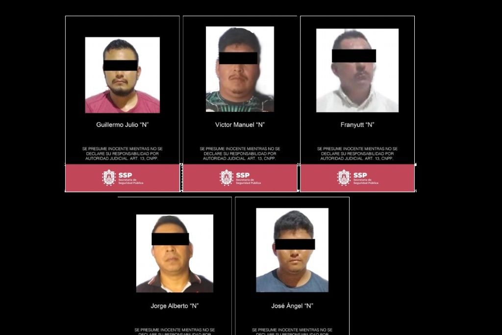 Por su probable responsabilidad en estos ilícitos, Guillermo Julio “N”, José Ángel “N”, Franyutt “N”, Víctor Manuel “N” y Jorge Alberto “N” quedaron a disposición de la autoridad competente para los trámites de ley.