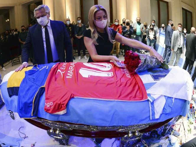 «Claudia (Villafañe) y las hijas de Maradona están en un velorio íntimo a cajón abierto dándole un último adiós hasta que se retire el féretro de la Casa Rosada», señaló una fuente gubernamental.