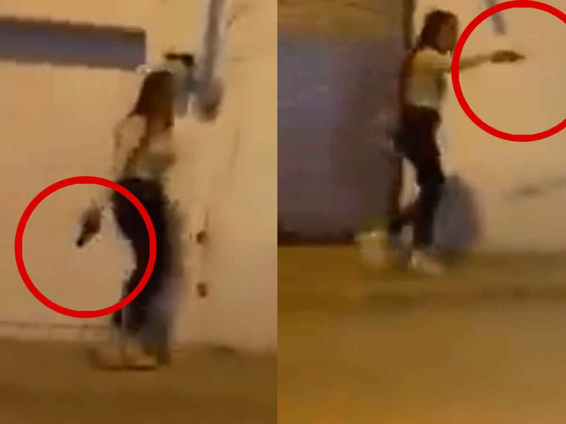 En las imágenes se observa a una mujer que presuntamente es la funcionaria, caminar por la calle realizando las detonaciones con un arma corta, situación que puso en alerta a las personas que discutían en la calle.