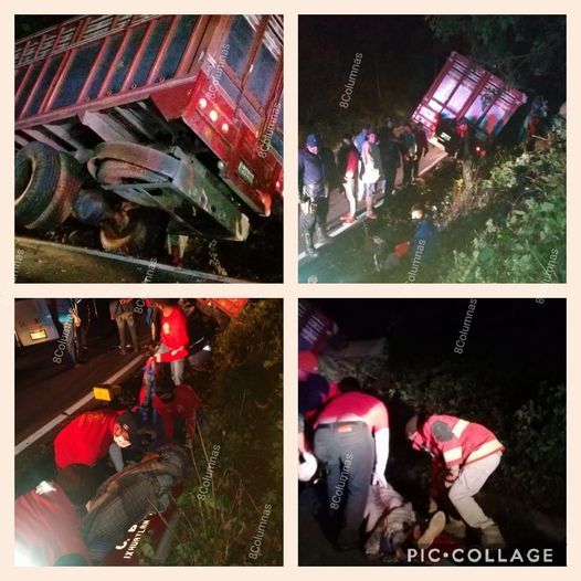 Fue a la altura del kilómetro 23 de la mencionada carretera donde, el chófer de un camión torton, perdió el control de la unidad y terminó volcando sobre su costado, ante ésta situación, ocho personas que viajaban sobre el velillo que transportaba, salieron “volando”, resultando heridos todos y dos de ellos de gravedad, al azotar contra el pavimento.