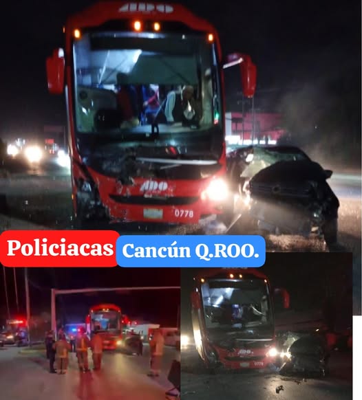 CANCÚN,Q.ROO. (Col.)13/12/24.- Un trágico accidente se registró durante la mañana de este viernes 13 de diciembre pasadas las 5:30 a.m., en donde presuntamente un automóvil particular realizó un sorpresivo corte de circulación al autobús, cuyo conductor no logro evitar el impacto y terminó por arrollarlo por varios metros.