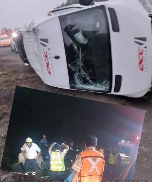 Trágico choque con volcadura de autobús, con saldo de 2 muertos y 13 heridos