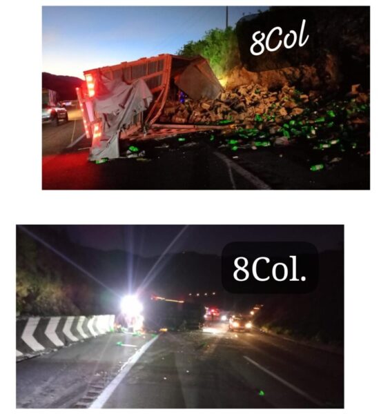 Tras aparatosa volcadura de camión torton cargado de cajas de cloro, muere conductor, en las Cumbres de Maltrata