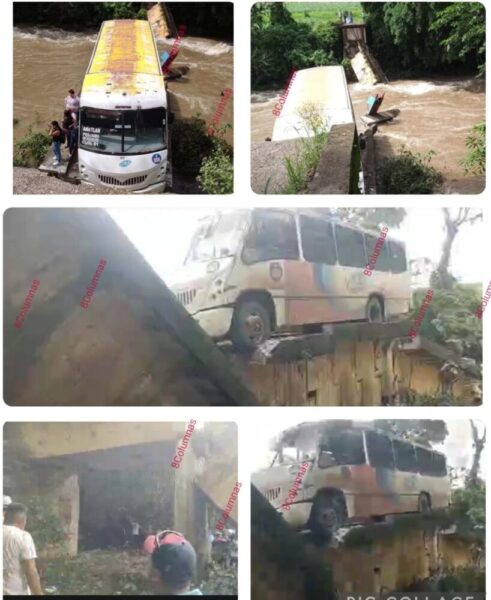 OMEALCA, VER.23/07/2024.(8Col.)Tras desplome del puente de concreto en el momento en que un autobús circulaba sobre está vieja estructura que comunica a la localidad de Tenejapan y otras más, reportan saldo de cuando menos 5 lesionados y 14 personas más que se llevaron un fuerte susto.