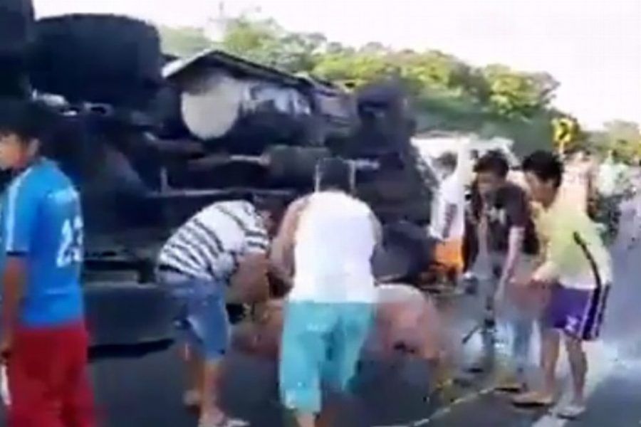 Tras volcar el vehículo de carga, pobladores de la zona llegaron al lugar y abrieron la caja del tráiler para llevarse en motocicleta, carro, triciclo o a pie más de 200 cerdos que se encontraban dentro.