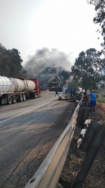 Se conoció que, el operador del tráiler marca Freightliner de color blanco y con placas de circulación del SPF: 301EP2, que remolcaba una caja seca cargada con agua embotellada y con placas de la ASF: D46UT4, perdió el control a causa del aparente exceso de velocidad en que circulaba, volcó sobre la carpeta asfáltica y se incendió en cuestión de minutos, debido a que los tanques de diésel se aplastaron.